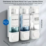 3-in-1 Wall-mounted Soap Dispenser, Shower Gel Dispenser, and Conditioner Dispenser
